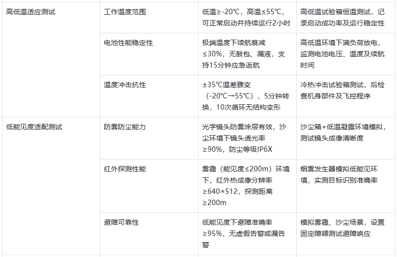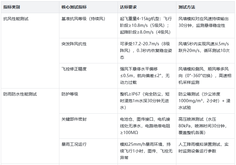 本清单基于《GB/T 38930-2020 民用轻小型无人机系统抗风性要求及试验方法》《GB/T 38997-2020 无人机系统 环境试验方法》及交警交通监测、事故勘察等实际场景需求制定,核心聚焦强风、暴雨、高低温、低能见度等典型恶劣天气适配性。