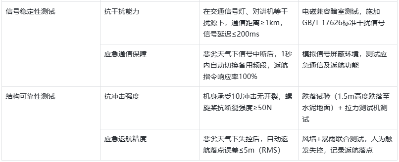 3、风险防控核心:标准通过规范风墙模拟、多风向测试等方法,强制验证机身结构、飞控修正精度等关键性能,避免未达标设备因强风失稳坠毁(如坠车流引发二次事故),同时保障任务连续性(如交通监测不中断)。
